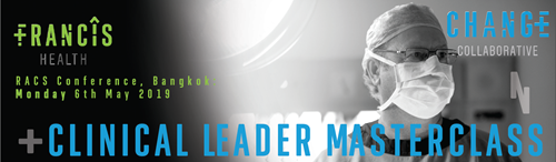 The Surgical Directors Section is offering a complimentary Clinical Leader Masterclass in collaboration with Francis Health on Monday 6 May (Workshop Day) at the 2019 ASC, Bangkok. Francis Health works with health care organisations on performance improvement and offers leadership and team development opportunities across New Zealand, Australia and the United Kingdom.