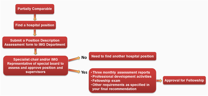 IMG surgeons who are assessed as partially comparable will be required to complete all of the following requirements before being eligible for specialist recognition and Fellowship of the College: